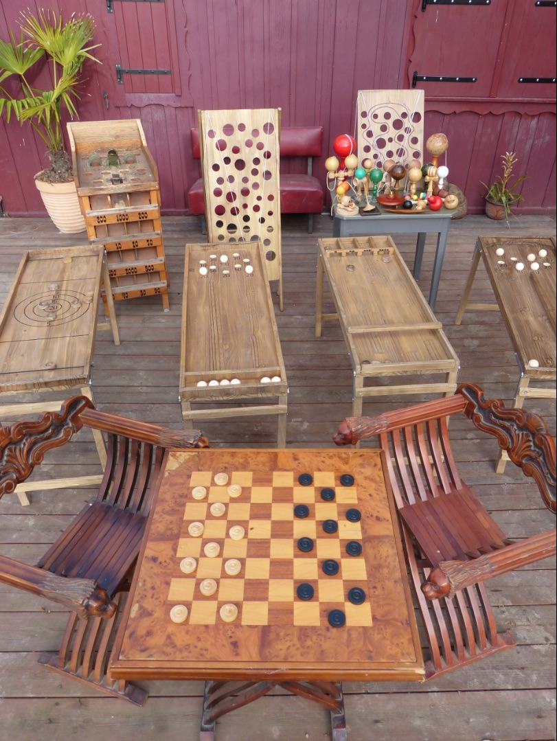 Véritable voyage dans le temps, cette animation permet de redécouvrir le jeu de la grenouille, le jeu de dames, les billards japonais ou hollandais, le double chinois, le tir sur cible, la bagatelle, la planche à trous, le palet breton, le lancer de fer à cheval, les quilles, les bilboquets, les toupies, les casse-têtes et bien d’autres encore.