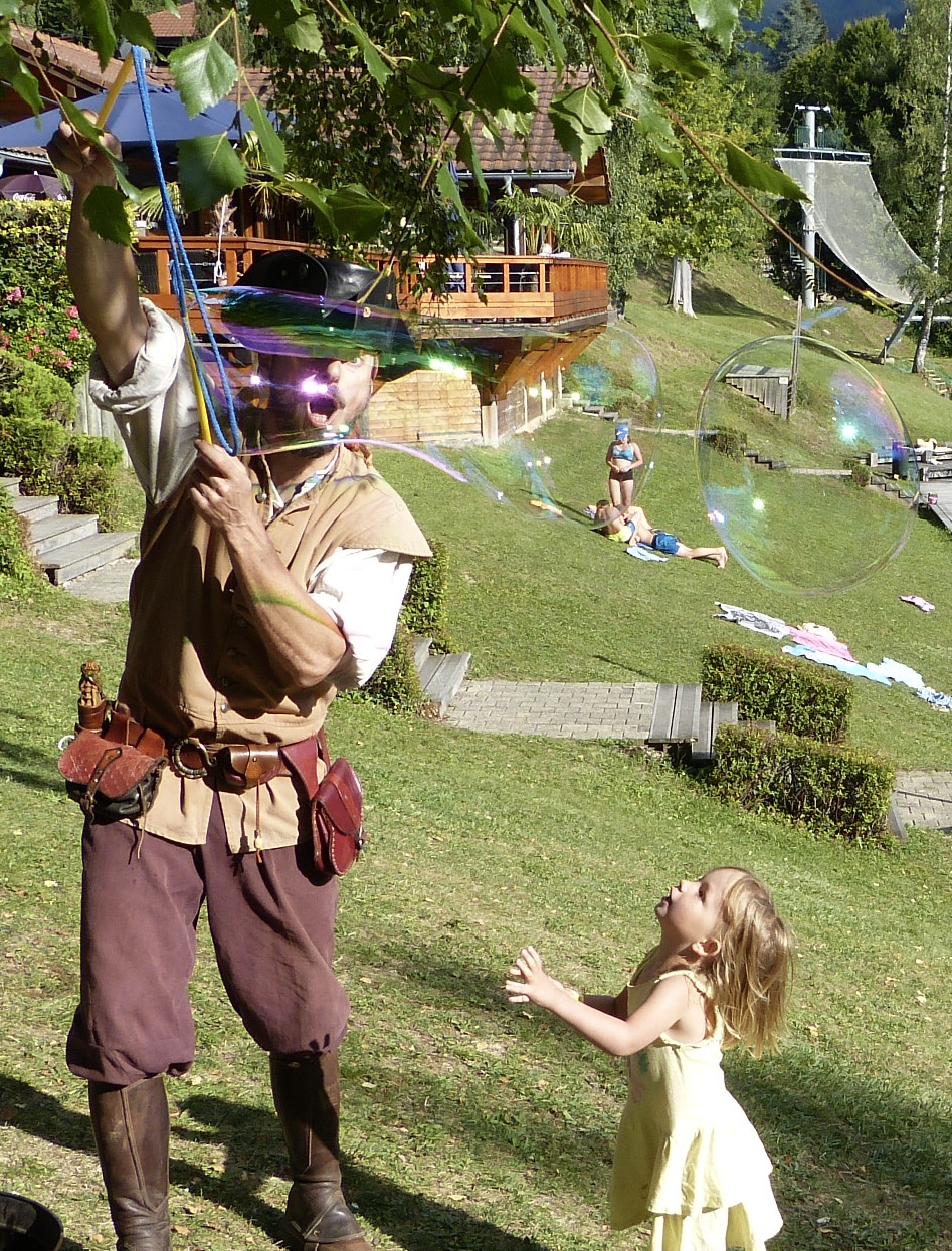 Jonglerie aux balles, aux couteaux et aux haches, bilboquet, bulles géantes, acrobaties et équilibres périlleux composent un spectacle généreux, accessible à tous les publics en quête d’aventure et de dépaysement.